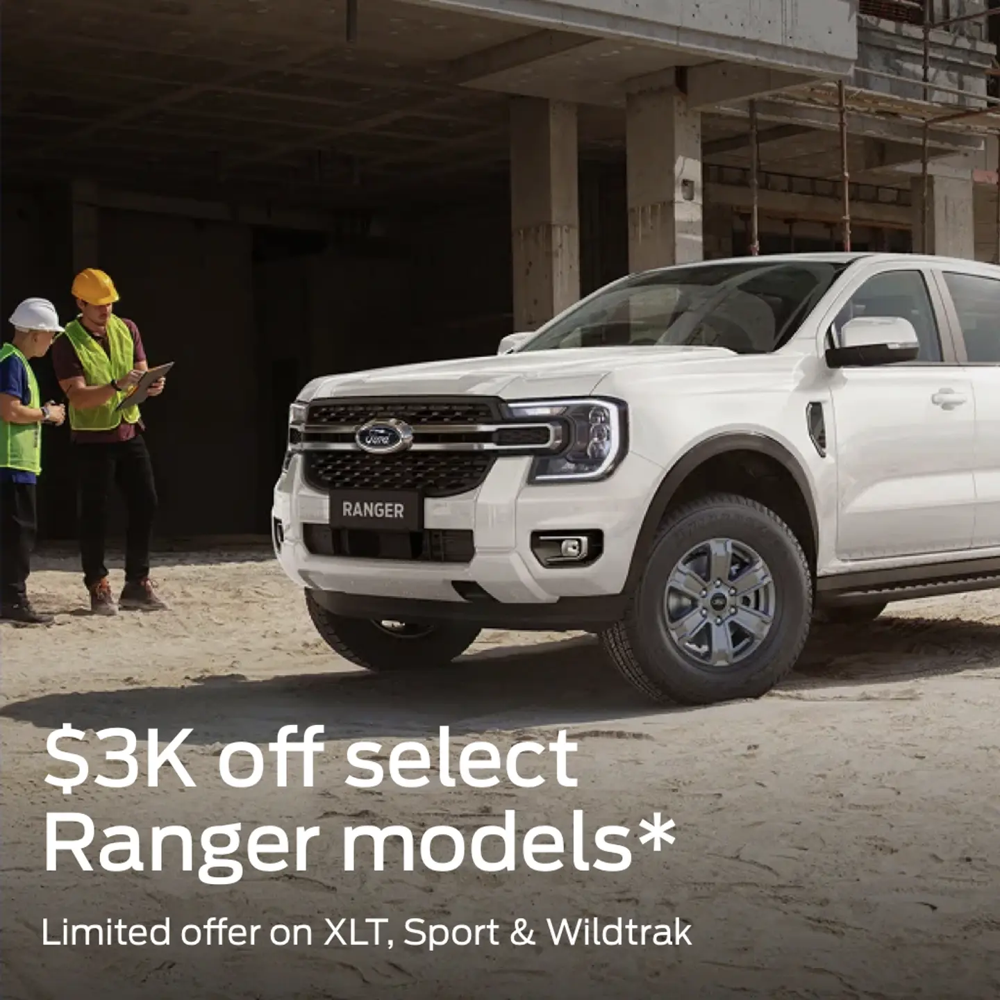 * Offer available on Ranger XLT, Sport and Wildtrak models, at participating dealers, while stocks last. Vehicles must be ordered and delivered between August 19 and September 30, 2025. Offer is not to be used in conjunction with any other offer. Available to Private and Blue, Silver and Gold Business Fleet and On Sold Demonstrators customers only.